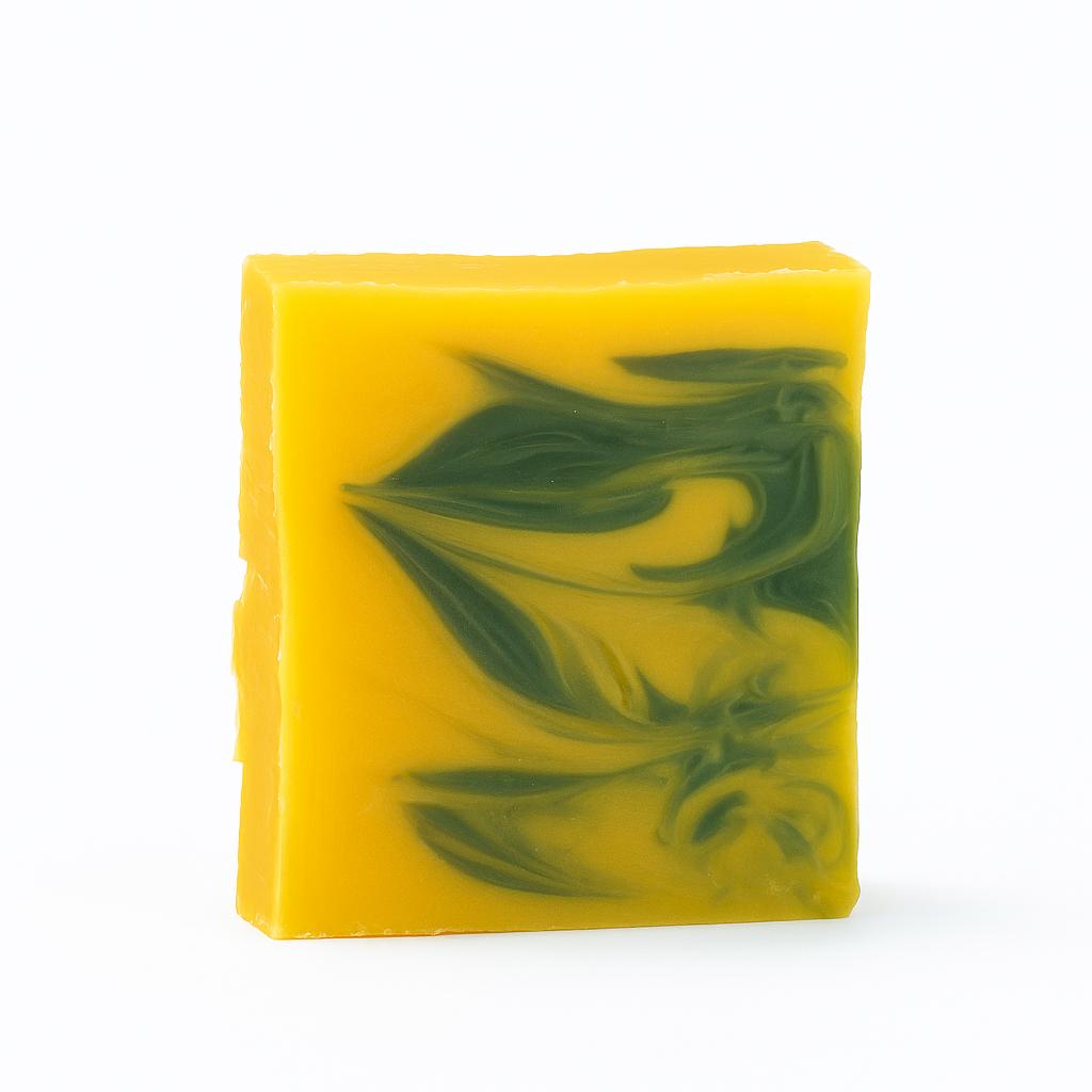 Handgemachte Seife für Körper und Hände, verpackt im nachhaltigen Graskarton. Frischegewicht 100g